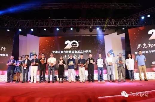 大连市室内装饰协会20周年庆典,现场共颁发奖项为65 个,其中“优秀企业奖”13个,“优质工程奖”6个,“优秀设计奖”13个,“优秀设计师奖”9人,“优质产品奖” 9个、“突出贡献奖” 14个、“杰出人物奖”1 人。